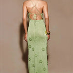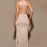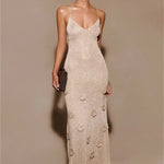 Women's Evening Prom Gown - Sleeveless Spaghetti Straps - V-Neck Floral Embellished Elegant Wear