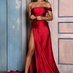 Make a statement in our Women's Evening Gown - Strapless Fitted Bodice - High Slit Elegant Formal Dress by Couture-Moda. This gown exudes elegance with its strapless design, fitted bodice, and alluring high slit. Crafted for unforgettable evenings, it promises a flattering silhouette and sophisticated sheen, perfect for prom, weddings or black-tie events.