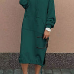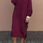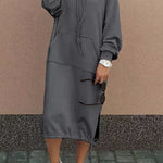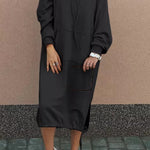 This comfy & stylish dress features a drawstring hood and hem, a kangaroo pocket, and long sleeves for ultimate casual chic. Perfect for effortless everyday wear.