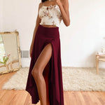 Women's Maxi Skirt - High Waist - Flowy Lightweight Fabric - High Slit Elegant Fit