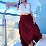 Elevate your style with Couture-Moda's Women's Maxi Skirt - High Waist - Flowy Lightweight Fabric - High Slit Elegant Fit. This high-waisted maxi features a daring high slit and asymmetrical hem. Crafted from lightweight material, it offers comfortable movement and an elongating silhouette.