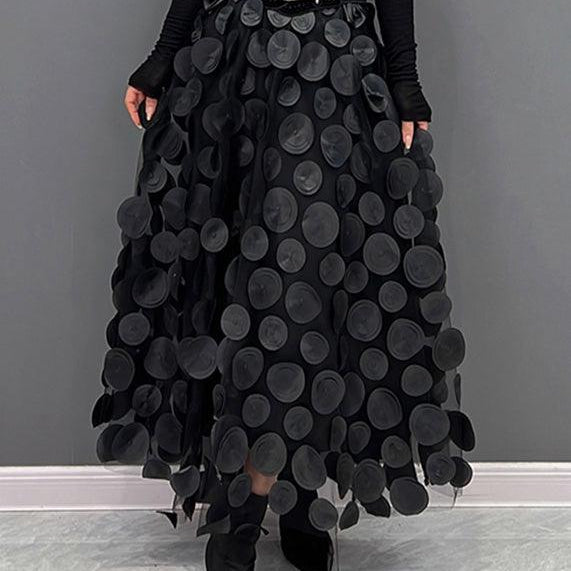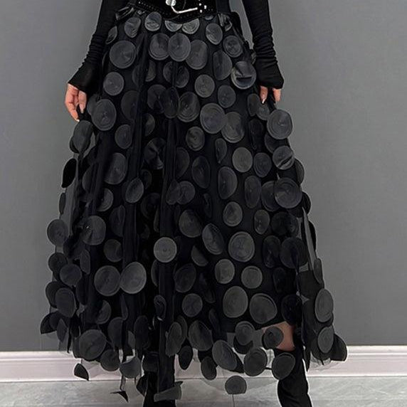 Elegant Tulle Patchwork Skirt for Women - Black Polka Dot Midi