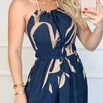 Women's Jumpsuit - Halter Neck - Cinched Waist - Wide-Leg Flowing Fabric - Floral Print