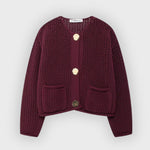 • Design: Mesh knit with gold-tone buttons and front pockets