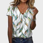 Isla offers a subtle celebration of modern, minimalist elegance. Crafted for a pristine white base, it is decorated with multicoloured wave motifs in green, blue, and gold that catch the light without shouting. The V-shaped neckline flatters the décolletage, while the relaxed fit delivers comfortable, contemporary polish for every occasion. Though understated, Isla speaks to craftsmanship and provenance, designed as a premium wardrobe essential that holds its value with quiet confidence and enduring appeal.