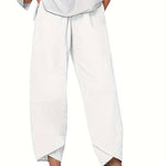 Women's Culottes - Wide Leg - Cropped Length - Elastic Waist - Lightweight Fabric. Embrace effortless style with these wide-leg, cropped culottes from Couture-Moda. Featuring a comfortable elastic waist and lightweight fabric, these trousers offer both style and ease of movement, perfect for everyday wear.