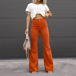 Women's Flared Trousers - High-Waisted - Vintage Bell-Bottom Style - Soft Textured Fabric