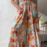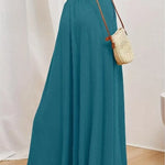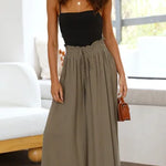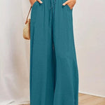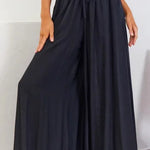 Women's Palazzo Trousers - High Waist - Wide Leg - Elastic Drawstring - Full Length