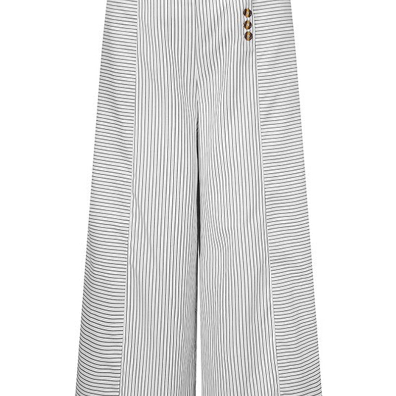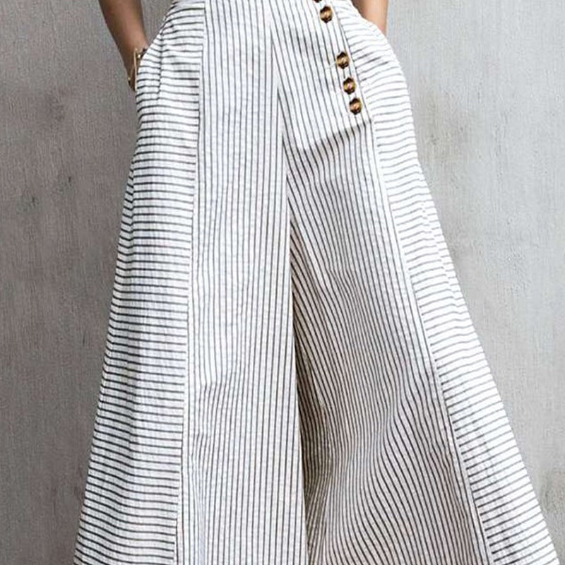 Women's High-Waisted Culottes - Wide Leg - Striped Pattern - Cropped Length - Button Detail
