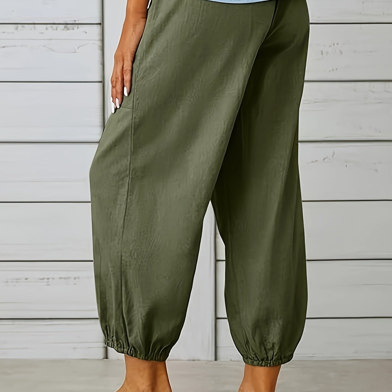 Women's Casual Trousers - Relaxed Fit - Elastic Waist - Breathable Lightweight Fabric