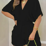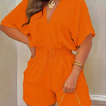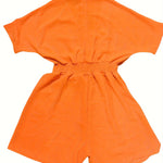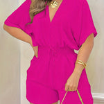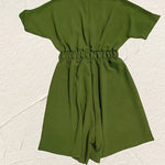 V-Neck Short Sleeve Romper - Shirred Waist Jumpsuit for Spring & Summer Women's Fashion