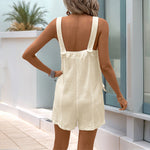 Women’s Romper – Textured Cotton – Relaxed Fit – Sleeveless – Button Front with Pockets