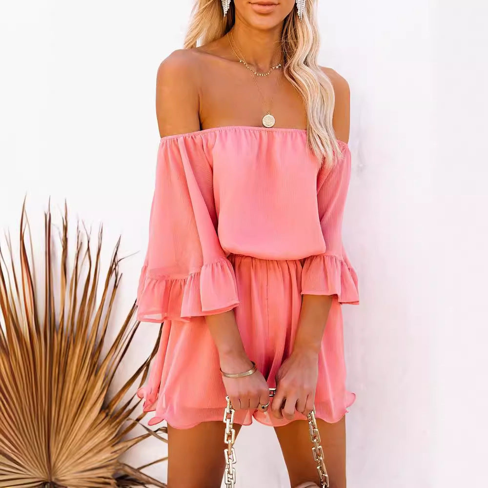 Effortlessly chic! This Women's Off-Shoulder Romper - Flowy Sleeves - Elastic Waist - Lightweight Casual Wear combines style & comfort. Perfect for warm days, its off-shoulder design and flowy sleeves create a relaxed vibe while the elastic waist flatters your figure. A must-have for your casual wardrobe!