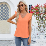 Women’s Short Sleeve Blouse – Relaxed Fit – V-Neck – Ruffled Sleeves – Breathable Blend