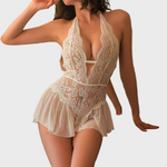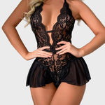 Alex | Lace Dream Set Nightwear embodies artisan elegance in a sleek black bodysuit. Combining sumptuous lace with strategic sheer panels, it contours the body while preserving refinement. Floral detailing and a playful, short ruffle at the hem accentuate the silhouette, producing a timeless balance of seduction and sophistication. Crafted in limited quantities, this piece offers lasting value and a discreet sense of prestige for the wearer.