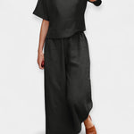 • Crafted from airy linen, the blouse and trousers offer feather-light comfort that drapes with elegance.