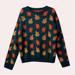 Women's Knitted Sweater - Leaf Pattern - Round Neck - Long Sleeve - Ribbed Cuffs