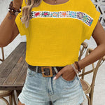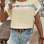 Women’s Blouse – Relaxed Fit – Boho Embroidery – Breathable Crinkled Fabric – Short Sleeve